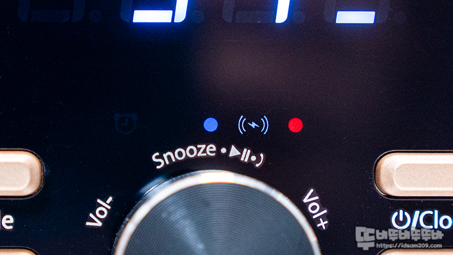 전면에는 알람, 블루투스 연결, 무선 충전, 블루투스 스피커 충전 등 상태에 따른 LED 효과를 시각적으로 확인이 가능하여 편리하게 사용할 수 있네요.