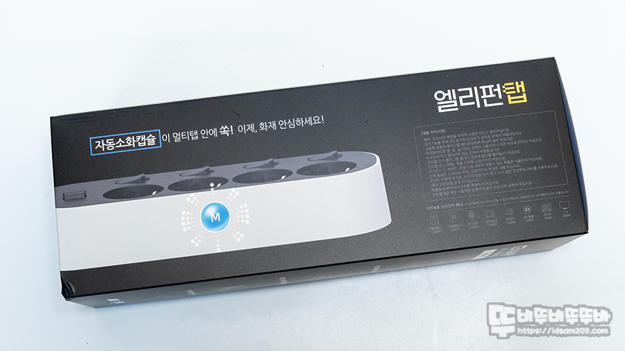 이번에 리뷰할 제품은 자동 소화기능이 내장된 엘리펀탭의 멀티탭 멀티콘센트 블랙 4구 1.5M입니다.