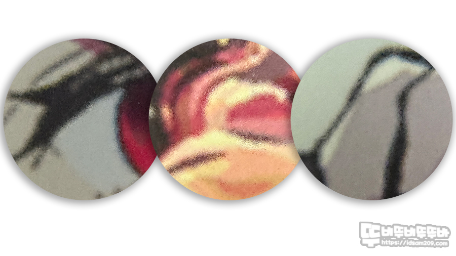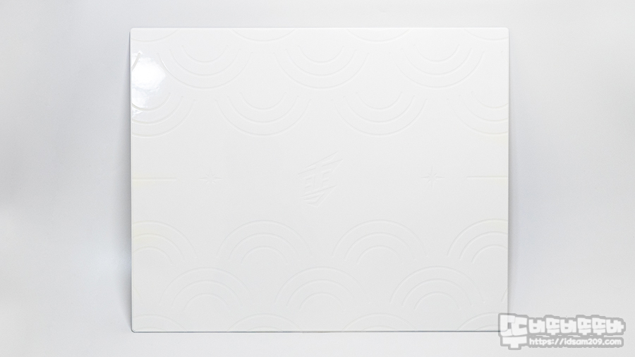 제품의 표면을 확대해 보면 대부분의 강화유리 패드가 그러하듯 표면의 질감에 뒷면에 부착된 이미지가 투영되는 형태를 확인할 수 있습니다.