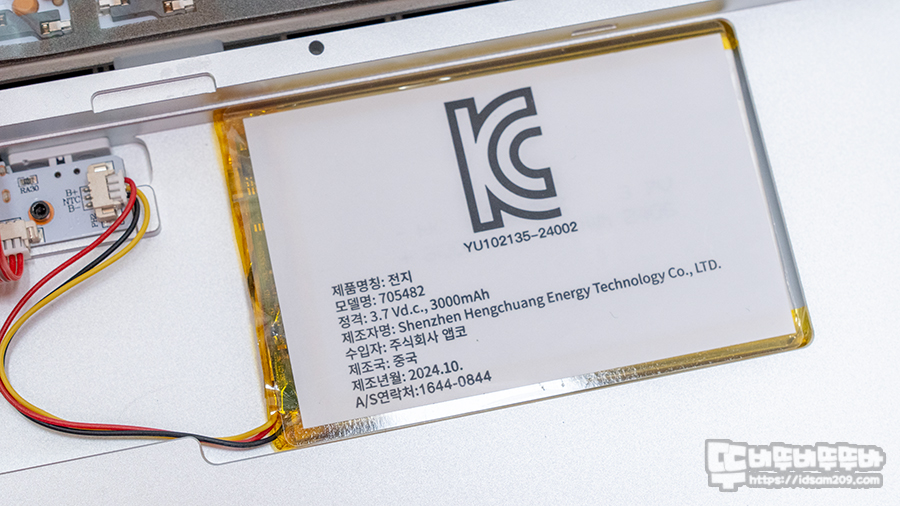 하판의 육각 나사를 모두 제거하고 내부를 살펴보면 가장 눈에 띄는 부분이 리튬 폴리머 배터리인데요.