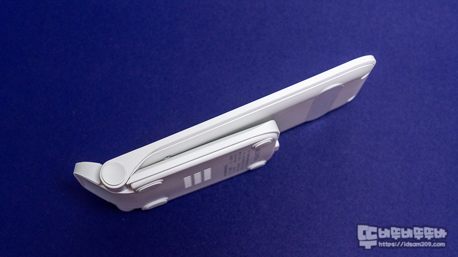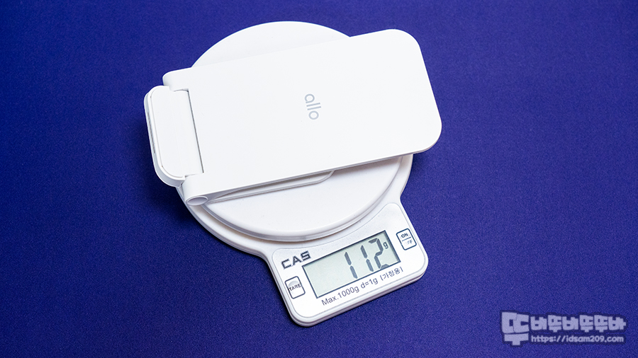 제품은 무선 충전 시 발생하는 발열을 해소하는 타공 된 통풍구가 바닥에 위치하고 있으며 전체적인 무게는 112g으로 가벼운 편입니다.