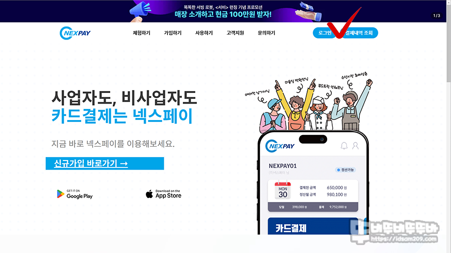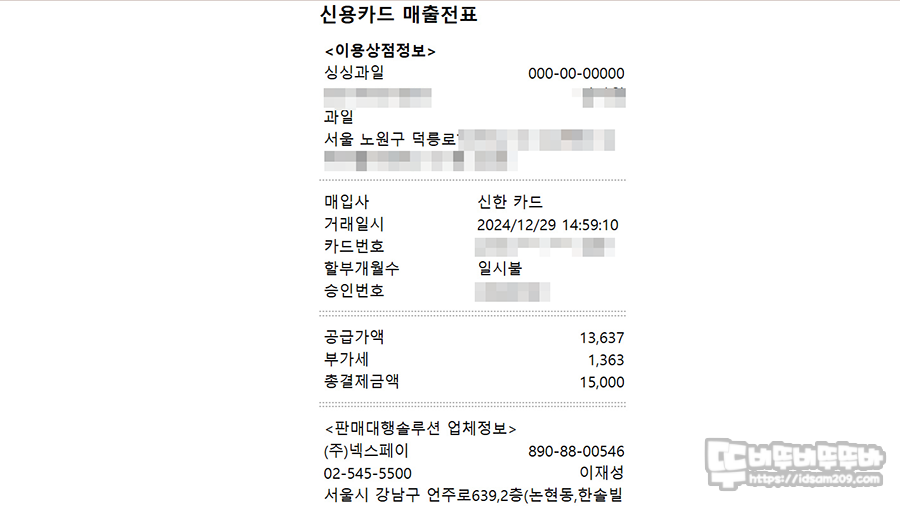 다시 넥스페이 홈페이지에서 결제내역을 조회하니 노원구에 위치한 싱싱과일이라는 상호에서 결제한 내역을 확인할 수 있었습니다.
