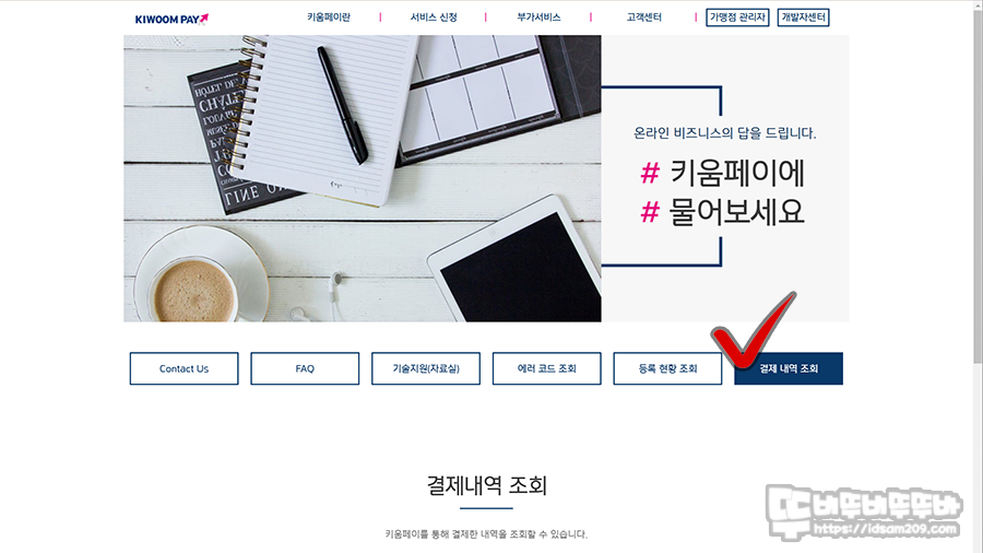 그래서 홈페이지 상단 "결제사용내역" 조회를 눌렀더니 키움페이 홈페이지로 연동되네요.