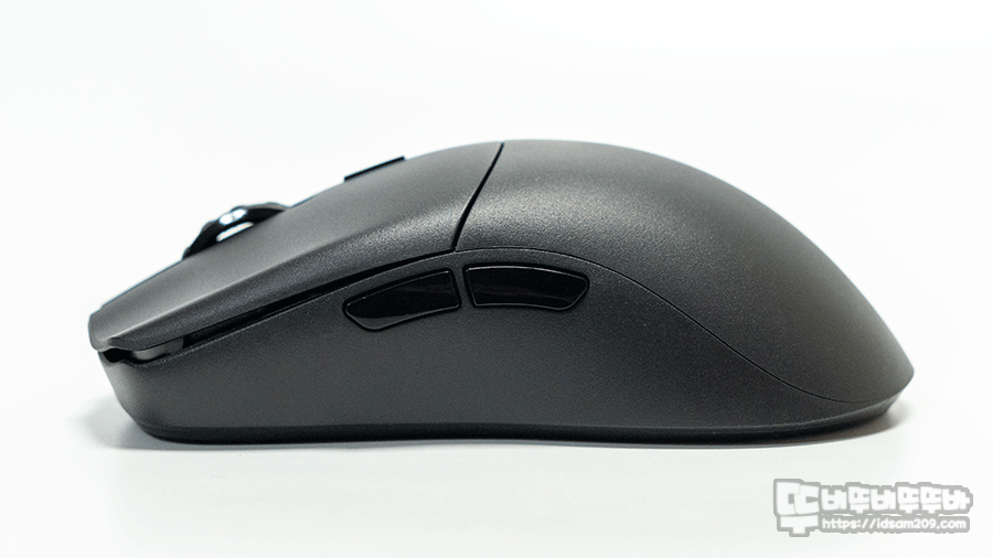 글로리어스(Glorious) SERIES 2 PRO 8K 무선 게이밍 마우스는 타공 디자인인 O 2 미니와 다르게 솔리 하우징으로 디자인되었음에도 55g의 가벼운 무게감을 제공하며 119mm 길이에 62mm 폭으로 미니 사이즈지만 그립감이 좋은 편입니다.