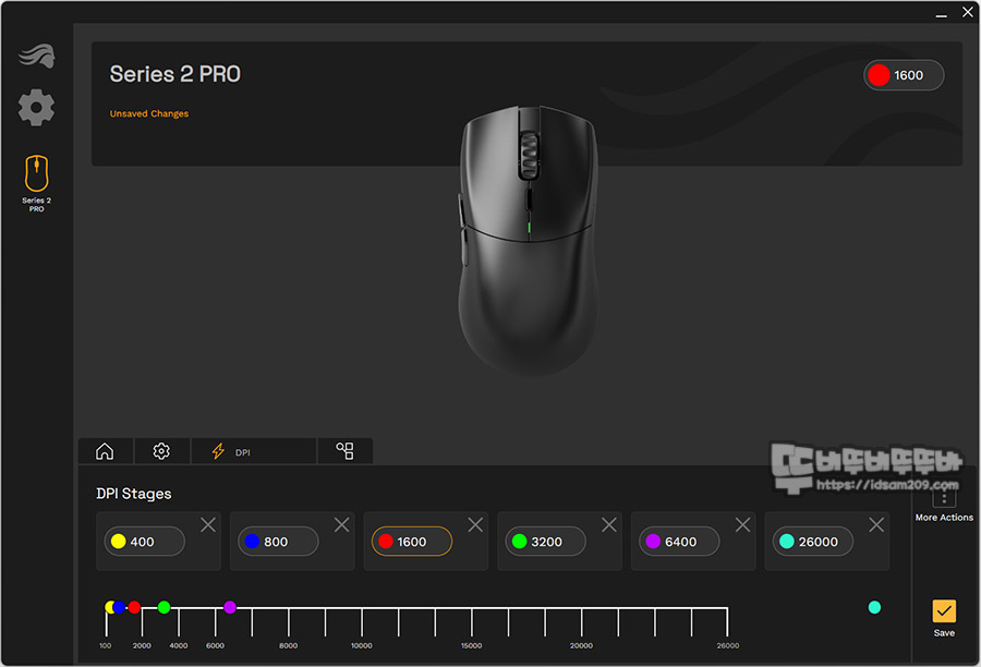 최대 6단계의 DPI를 설정할 수 있으며 한번 설정된 DPI 값의 경우 수정이 불가능하기에 수정이 필요한 경우 X 표를 눌러 삭제 후 다시 등록하셔야 합니다.
