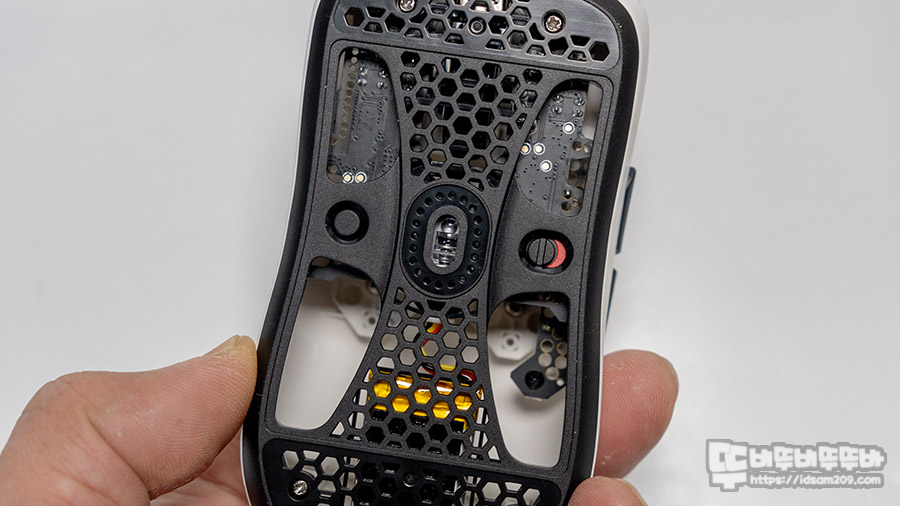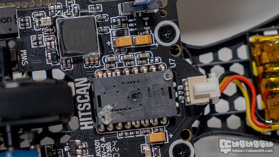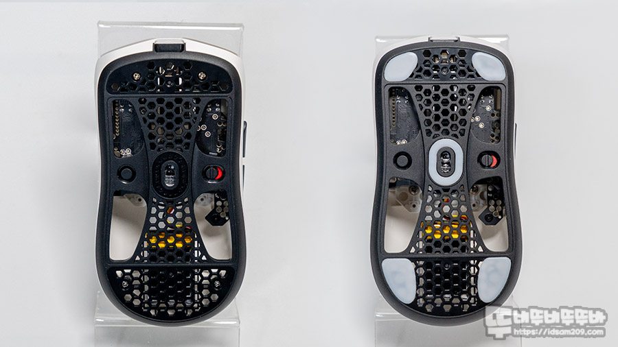 대부분 경향 마우스의 경우 마우스 기판 이외에는 최소한의 구성으로 설계되고 있는데 히트스캔 하이퍼라이트 마우스로 다르지 않더라고요.