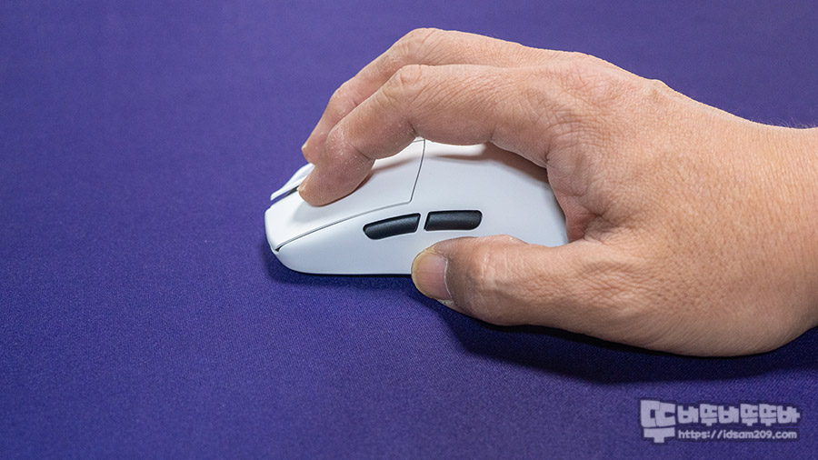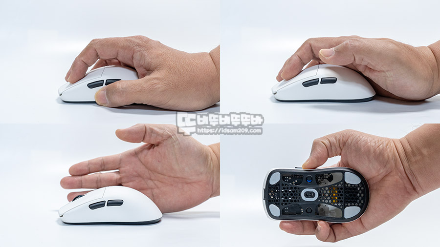 마우스 크기에 따른 그립보다는 사용자가 편하게 사용할 수 있는 다양한 그립이 가능한 제품이기에 초경량형 무게에 따는 마우스 컨트롤에 적합한 그립을 사용하시면 좋을 거 같네요.