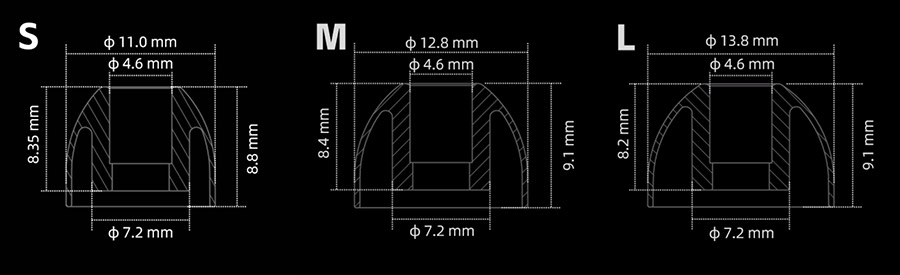 이어팁을 고정되는 부분은 7.2mm 지름을 기본으로 사이즈가 조금씩 다르게 설계되어 대, 중, 소로 구분되는게 특징입니다.