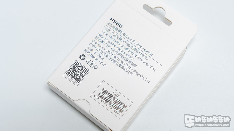 FiiO HS20 액체 실리콘 이어팁 패키지는 HS20이 이런 형태라는 느낌을 확인할 수 있는 이미지와 Liquid Silicone (액체 실리콘)이라는 설명으로 제품의 특징을 잘 표현하고 있습니다.