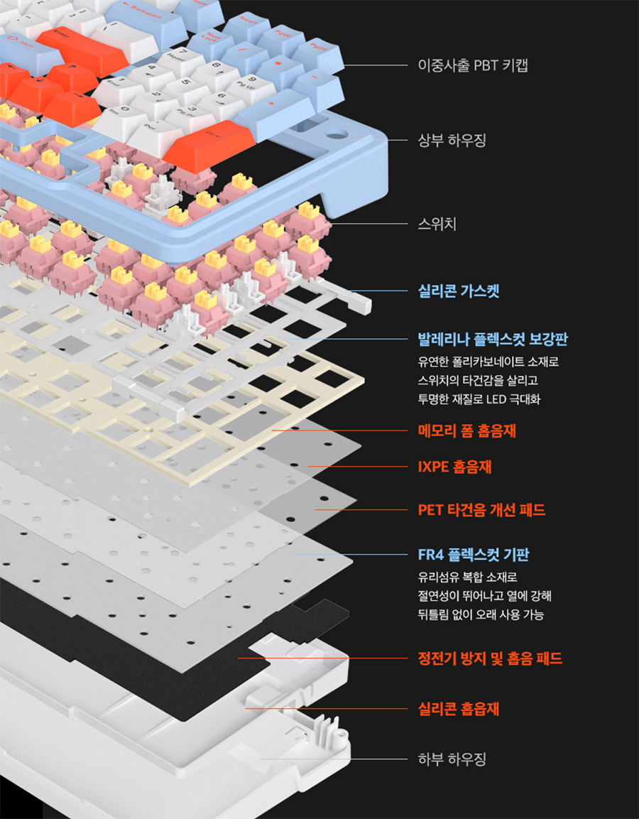 - 키캡 : PBT 이중 사출 키캡 3톤 컬러