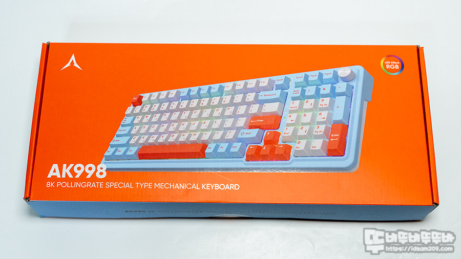 앱코 AK998 8K OTEMU 특주축 기계식 키보드(저소음 피치축) 패키지는 블랙 컬러와 스카이 블루 컬러로 출시되었는데요.