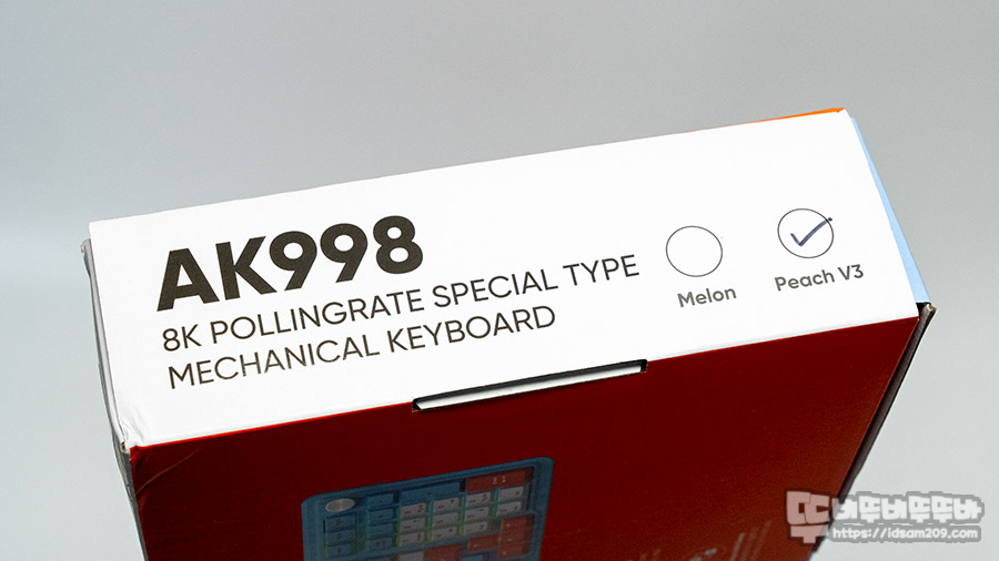뒷면에 인쇄된 포인트 정보로는 스페셜 스빌라이저, 새로운 멜론 & 피치 V3 스위치, 3톤 이중사출 PBT 키캡, RGB LED효과 사이드 USB-C 포트, 노브 & ANSI 레이아웃, 8K 폴링 레이트 지원 마지막으론 쉽게 교체가 가능한 핫스왑 소켓 내장 등의 내용과 이중 스태빌라이저와 스위치는 앱코가 직접 개발에 참여했다고 강조하고 있습니다.