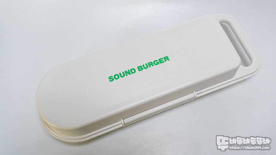 제품은 종이 띠지에 감겨있는데 띠지를 제거하면 사운드 버거라는 다소 촌스러운 그린 컬러 텍스트를 마주하게 됩니다.