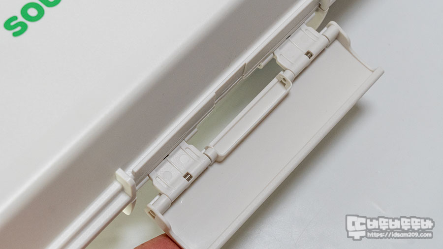 아래쪽에 홈에 손을 넣어 위쪽으로 잡아당기면 탈거되면서 고정 클립을 분리 후 커버를 열 수 있게 되어있어 뚜껑을 고정하는 고정력이 상당히 놓은 편입니다.
