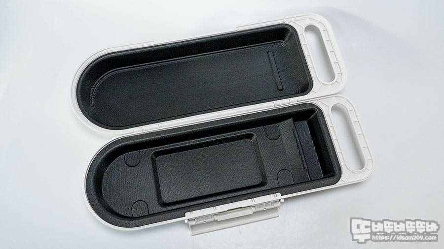 하드 케이스 안쪽은 검정색으로 구분되는 별도의 소재가 사용된 크래들로 구성되어 있어 바닥면을 눌러보면 살짝 눌리는 느낌이 있긴 하지만 특별한 건 없네요.
