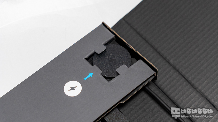 위쪽분의 오픈하면 1.8m의 USB 충전 케이블을 확인할 수 있으며 천 패드 표면을 보호하기 위해 종이 커버가 덮여있으니 커버를 벗겨내면 전체적인 패드 모습을 확인할 수 있고요.