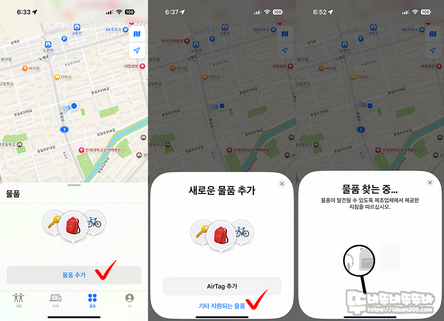 - ‘나의 찾기’ 앱에서 기타 항목 추가 선택