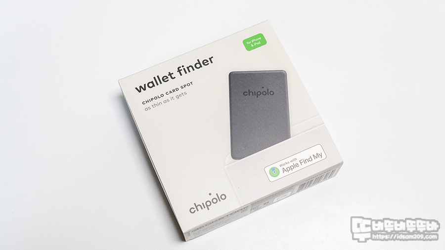 치폴로 카드 스팟의 패키지는 제품 이미지와 함께 **"Wallet Finder"**라는 타이틀이 눈에 띄며, 우측 상단에는 iPhone/iPad 호환을 명확히 표기하고 있어 Apple 사용자용 제품임을 강조하고 있고요.