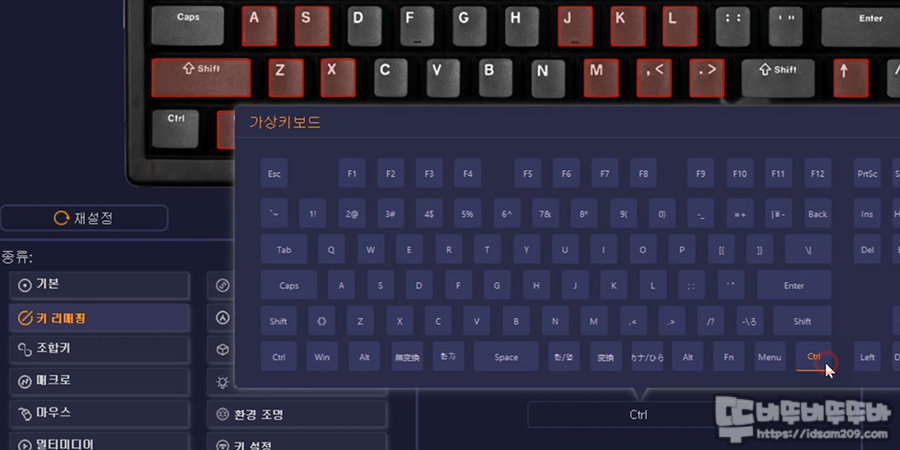 다행히도 소프트웨어를 확인해 보니 Fn 레이어 메뉴를 통해 키 리맵핑 기능을 이용하면 Fn + 오른쪽 Alt 조합을 오른쪽 Ctrl 기능으로 사용이 가능하니 사용에 참고하시기 바랍니다.