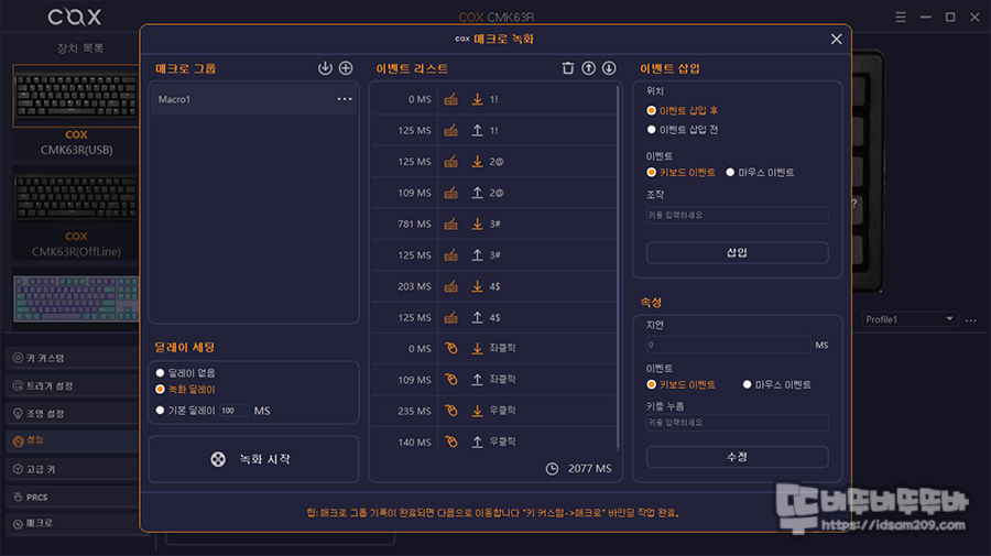 그 외 매크로 기능은 일반적인 매크로 기능과 크게 차이 나지 않습니다.