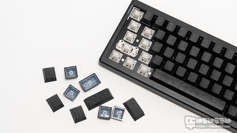 FR4 보강판의 텐션과 가스켓 방식의 실리콘 조합 거기에 층층이 적용된 흡음재를 통해 통울림 없는 타이핑이 가능했는데 여기에 HAIMU 저소음 자석축이 플러스되어 알루미늄 커스텀 못지않은 정숙함을 제공합니다.