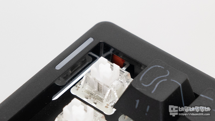 플라스틱 하우징 내부에는 다양한 흡음재가 적용되어 있고, 가스켓 방식으로 체결된 FR4 보강판이 특유의 탄력감을 제공해 묵직하면서도 부드러운 타건감과 더불어 확실히 소음이 없는 편이고요.