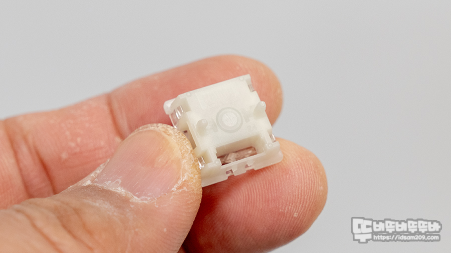 홀 이펙트를 지원하는 자석축을 사용한 만큼 보강판과 홀센서와 자석이 접촉되는 중앙 부분을 제외한 양쪽에 고정핀이 사용되어 스위치 체결 시 견고하게 결합되네요.
