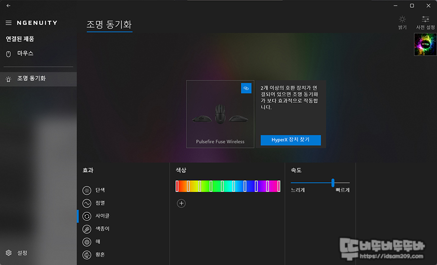 같은 브랜드 제품을 사용할 때 RGB 효과를 통합으로 관리하는 동기화 기능을 먼저 확인할 수 있었습니다.