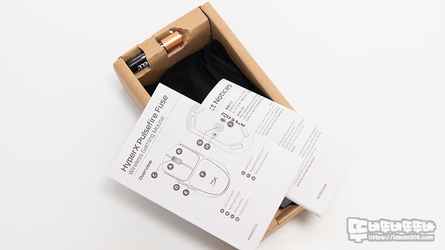 패키지 내부는 종이로 디자인된 크래들에 파우치에 감싸인 마우스, 사용 설명서 그리고 크래들 위아래에 AAA 건전지와 RF 무선 리시버가 담겨있으니 패키지 개봉 중에 분실되지 않게 주의하시기 바랍니다.