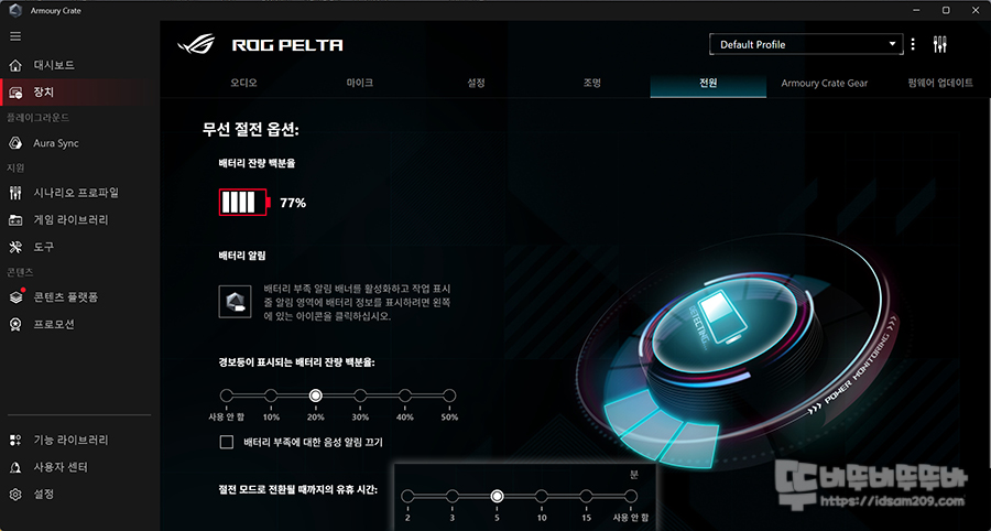 Armoury Crate 통합 소프트웨어를 사용하는 만큼 ASUS ROG PELTA 헤드셋이 연결되면 해당되는 업데이트를 통해 다양한 설정이 가능한데요.
