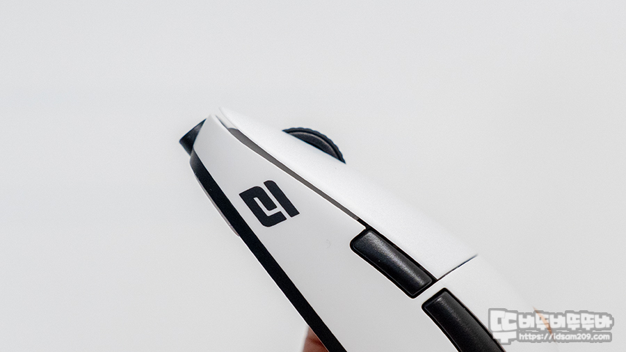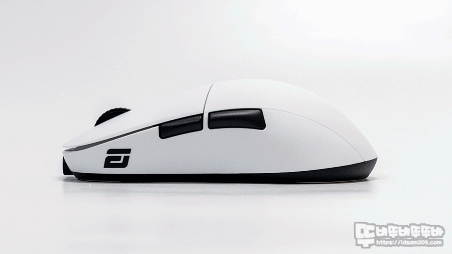 마우스 왼쪽에는 엔드게임기어 로고와 바닥면 엣지면에 DPI LED 인디케이터가 내장되어 DPI 선택 시 해당 컬러를 표현해 줍니다.