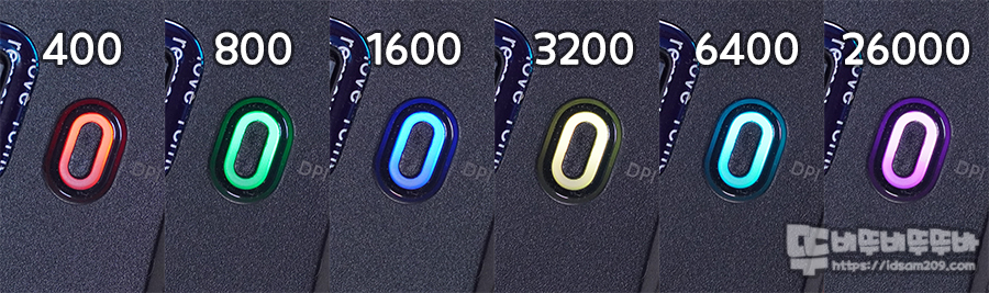 마우스 바닥면에 위치한 DPI LED 인디케이터 모습.