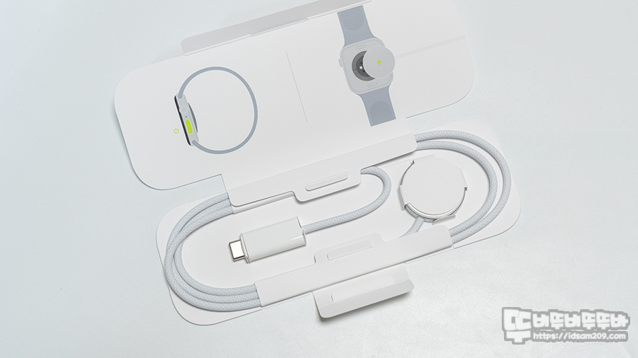 애플워치 10 패키지에는 애플워치와 충전기가 들어있고요.