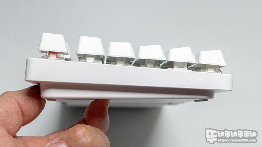 화이트 컬러와 PBT 재질의 조화라 그런지 키캡 표면이 뽀송뽀송한게 오랜 시간 타이핑해도 새거 같은 느낌을 주네요.