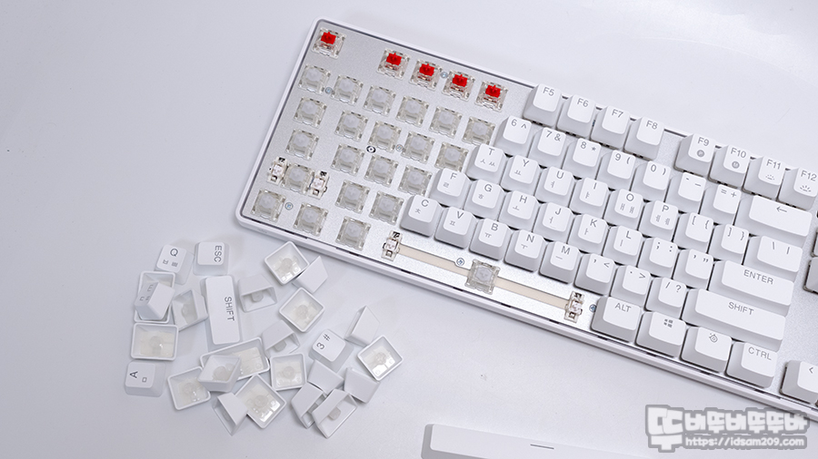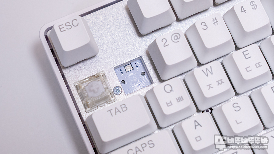 기계식 스위치가 모디열에는 핫스왑 방식이 적용되어 있지 않지만 광스위치가 적용된 문자열을 스위치 교체가 가능하니 참고하세요.