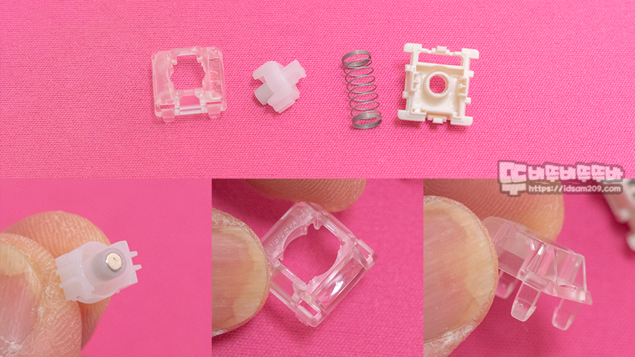 옴니포인트 3.0 스위치는 0.1 ~ 0.4mm 입력 포인트 조절이 가능한 자석이 중앙에 위치하는 홀 이펙트 지원하는 자석축으로 스위치 LED 확산부는 스위치 뚜껑 부분에만 볼록하게 디자인되어 이전의 옴니포인트 2.0과 외형적으로 차별화하고 있습니다.