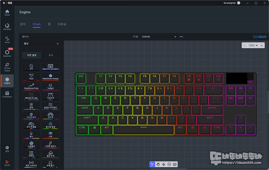 이전보다 다양한 게임에 대한 프리셋이 지원되기에 해당 게임을 설정 시 게임 화면에서 접하는 체력 게이지 무기 변경 등 다양한 이펙트 기능을 키보드에서 LED로 표현해 주니 즐겨하는 게임이 있다면 꼭 사용해 보세요.