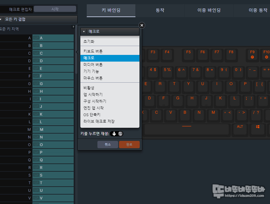 Apex Pro TKL Gen 3 키보드의 기본적인 메뉴를 살펴보면 키 기능을 변경하는 키 바인딩에서는 다양한 기능으로 설정이 가능한데요.