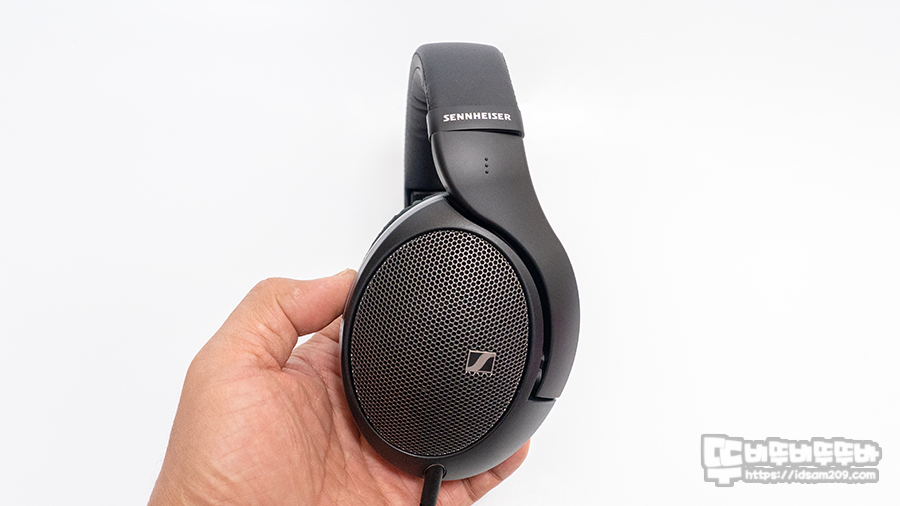 오픈형으로 디자인 이어컵 하우징은 메탈 그릴에는 젠하이저 로고와 이름이 헤어밴드에 브랜드 이름으로 아이덴티티를 표현하고 있는데 이전에 있던 가로 라인을 없애서 그런지 더욱 심플해진 느낌을 주네요.