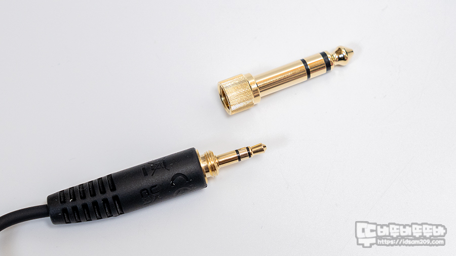 특히 케이블의 경우 2.5mm TRS 잭을 사용하는 헤드폰 하우징에 연결된 부분은 살짝 비틀어서 고정하는 몰딩 구조로 되어있고 앰프나 PC에 연결하는 부분은 3.5mm 몰딩 끝부분에 스크류 나사선으로 설계하여 6.35mm 아답터를 고정하는 형태로 디자인되었습니다.