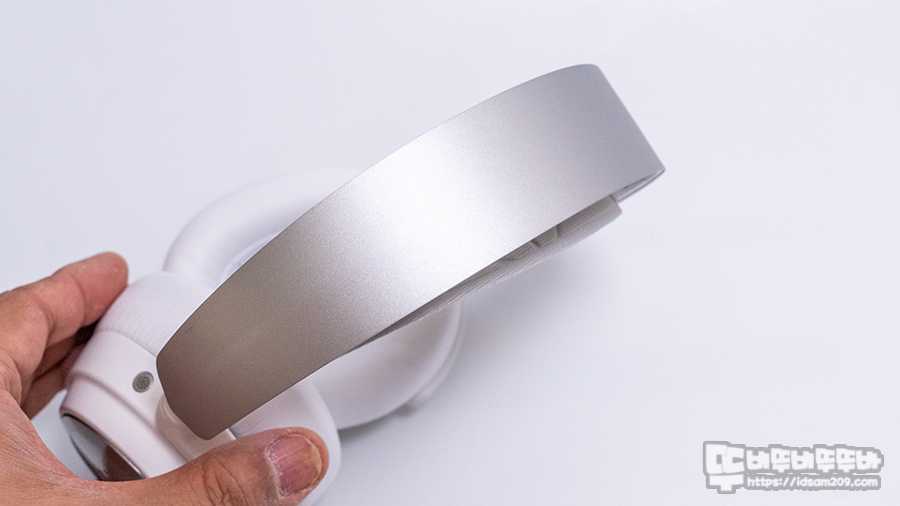 표면이 살짝 거친 헤어밴드 외부의 메탈 부분은 면적이 넓은 게 특징이며 이어컵 하우징 부분이 길이 조절이 가능하여 다양한 두상에 편안한 착용을 가능한데요.