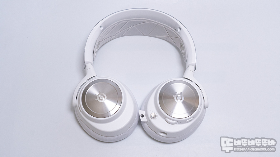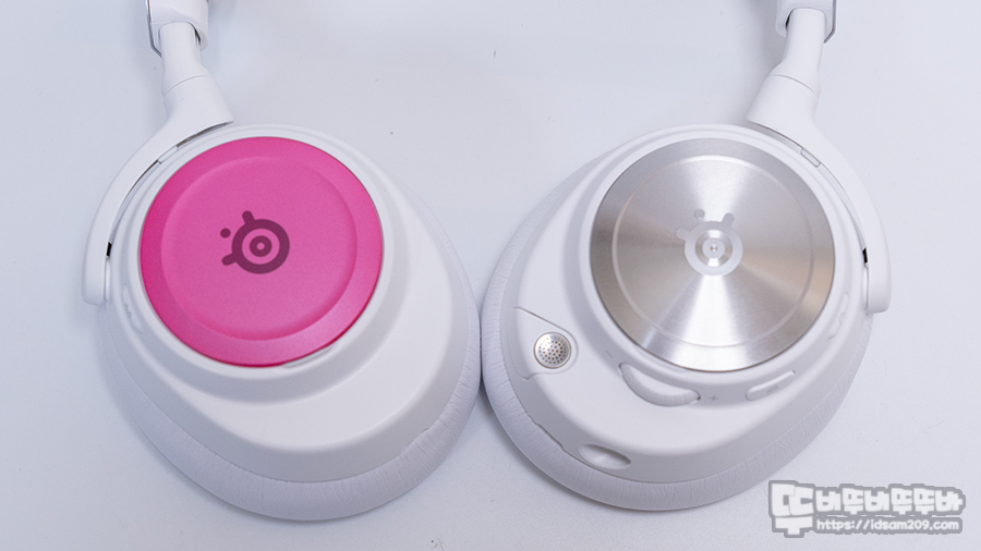 스틸시리즈 Steelseries Arctis NOVA Pro는 이어컵 하우징이 뒤쪽에 고정되는 움직이는 힌지 구조로 되어있으며 이어컵 하우징이 90도 플립과 약간의 틸트를 지원하며 이어컵 바깥쪽에는 스틸시리즈 로고가 각인된 원형 플레이트를 자석으로 탈부착할 수 있게 디자인되었습니다.
