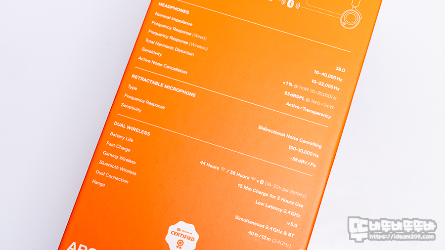 - 기타 : 퀵 충전 : 15분 충전에 3시간, 블루투스 5.0, 마이크 4개로 구현하는 능동형 노이즈 캔슬링(ANC), GameDAC Gen2 베이스 스테이션, 듀얼 무선 및 유선 지원 등의 정보를 확인할 수 있습니다.