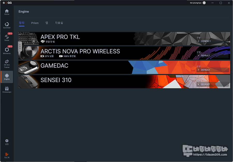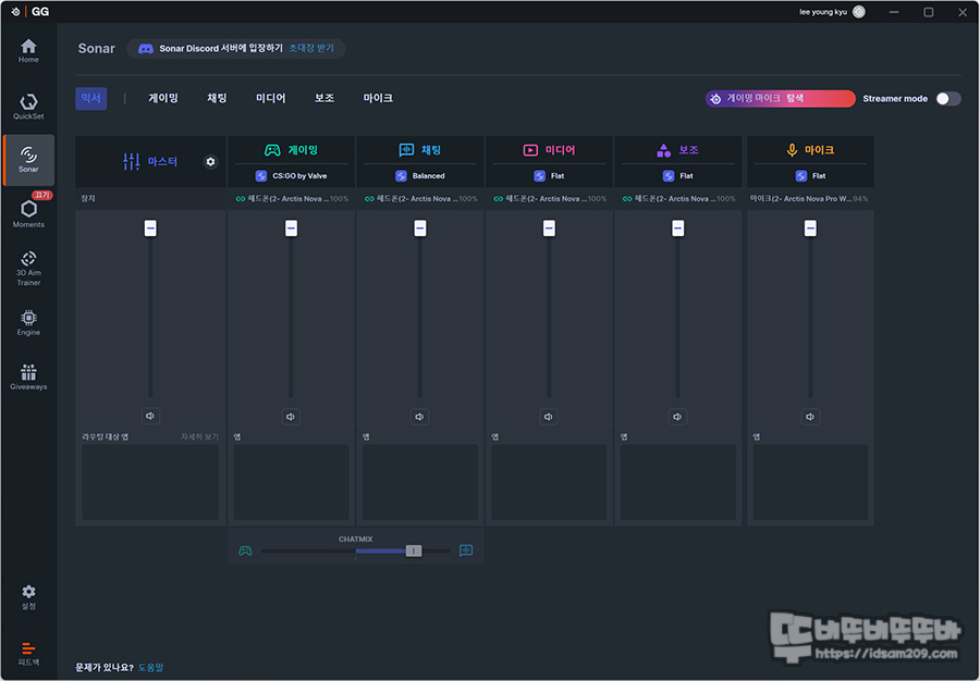 - 소프트웨어: SteelSeries GG Sonar 오디오 소프트웨어