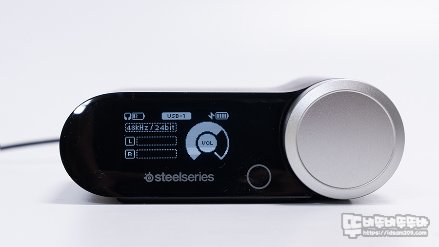 USB-C 입력, 이퀄라이저, 노이즈 캔슬링, 무선 연결, 마이크 볼륨, 디스플레이 설정 등을 노브를 회전, 길게 또는 짧게 눌러 선택하거나 노브 옆에 있는 동그라미 부분을 터치하여 이전 메뉴 또는 취소로 조작하게 되며 노브를 짧게 누르는 액션으로 볼륨 또는 Game & Mix의 밸런스 조절이 가능합니다.