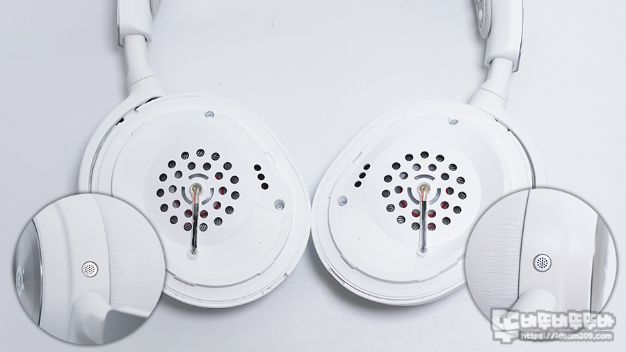 수납식으로 디자인된 마이크는 약 130mm 정도로 입꼬리 부분에 위치하여 사용하게 되는데 사용하는데 불편함은 없으며 노이즈 캔슬링을 위해 앞뒤로 마이크가 내장되어 선명한 음성 지원이 가능하며 마이크 윗단에 LED 인디케이터가 내장되어 마이크 Off 시 레드 LED로 마이크가 작동하고 있지 않다고 알려주니 참고하세요.