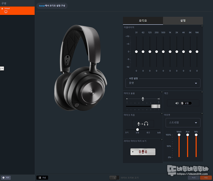 영상을 참고하시면 다양한 게임에 대한 프리셋, EQ설정, 사운드, 마이크, 보이스 챗에 대한 설정을 디테일하게 설정할 수 있습니다.