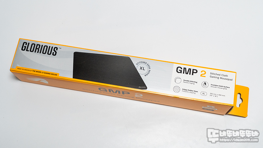 필자가 리뷰하는 제품의 사이즈는 XL 사이즈인데요. Glorious 글로리어스 GMP2 스티치 XL 마우스패드 패키지를 살펴보면 XL 사이즈 정보와 모델명 그리고 포인트 특징이 인쇄되어 있고요
