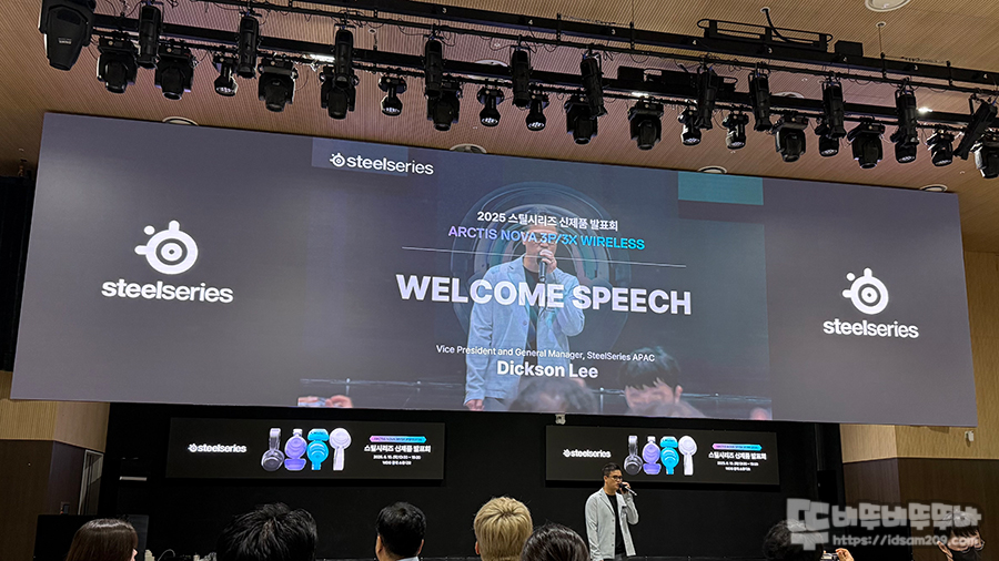 스틸시리즈 APAC 총괄 사장 딕슨 리의 기조연설로 스틸시리즈의 브랜드에 설명을 영어와 한글 통역으로 안내를 해주셨습니다.