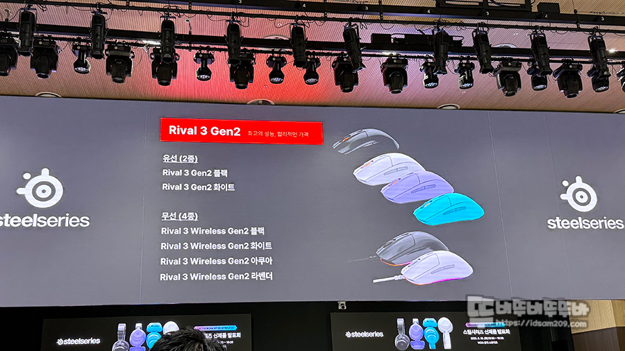 얼마 전에 출시한 라이벌 3 Gen2 모델에 설명도 잠깐 언급하셨는데 화이트/블랙/아쿠아/라벤더 무선과 블랙/화이트 유선 모델로 총 6가지 모델로 출시되었습니다.